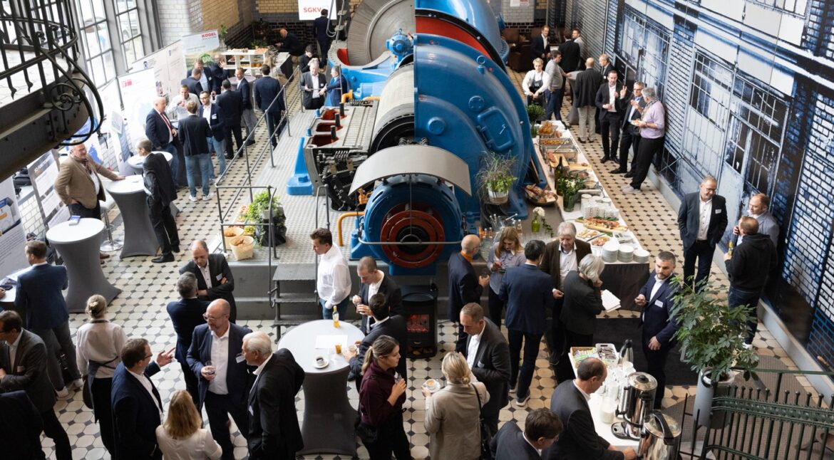 Foto: © SGKV / Bildlegende: In der in der Turbinenhalle des Berliner Heizkraftwerkes Moabit fand der 7. TerminalTag statt. Es blieb neben spannenden Vorträgen auch viel Zeit zum Netzwerken