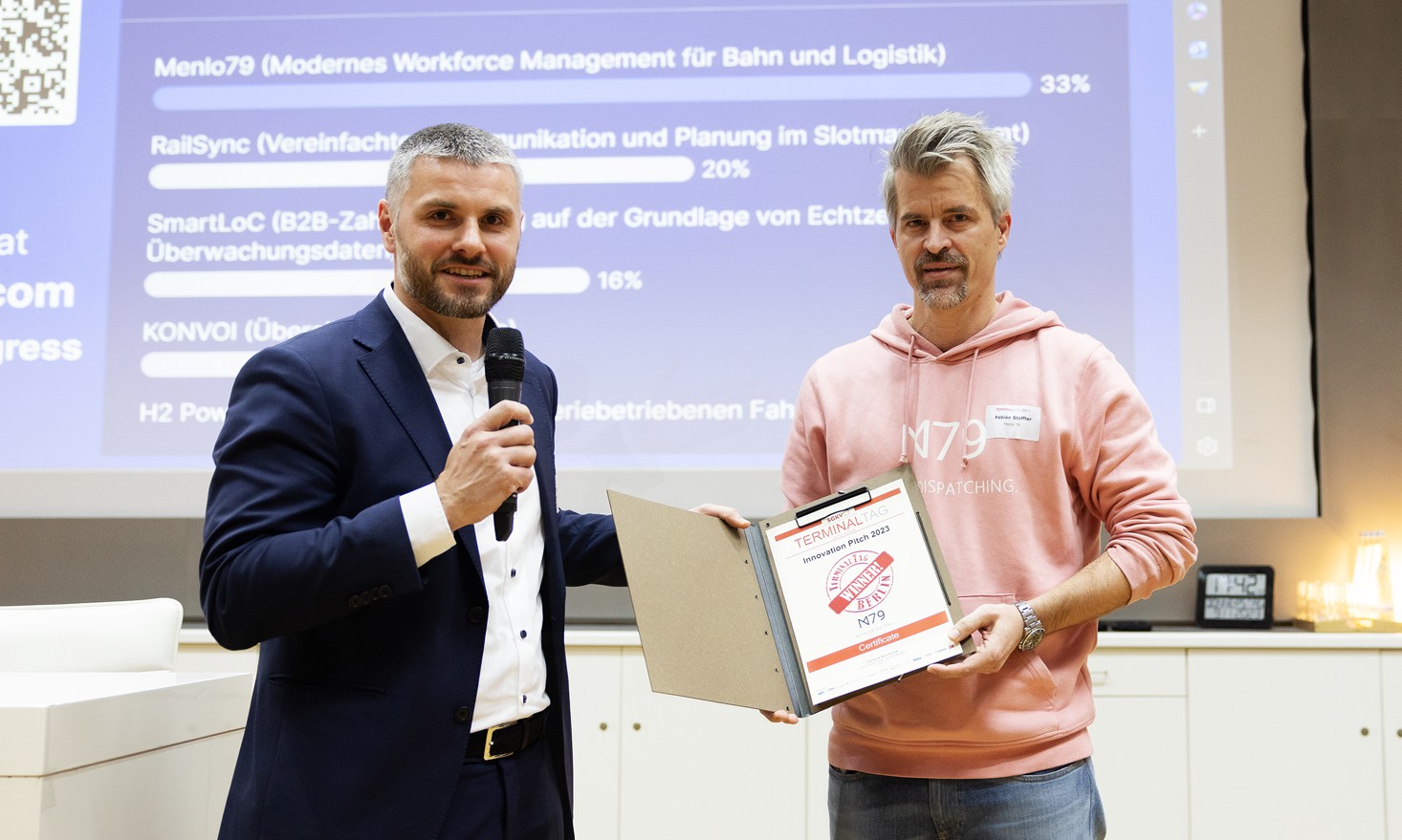 Jede Menge Innovationspotenzial bewiesen auch die Teilnehmer*innen des abschließenden Innovation Pitches. Sieben Start-Ups stellten ihre Lösungsansätze für effizientere und transparentere Prozesse vor. In einem engen Rennen auf sehr hohem Niveau konnte sich schließlich Fabian Stöffler von Menlo79 mit seiner digitalen Lösung WILSON durchsetzen. WILSON ist eine moderne Plattform für die Personalsteuerung, um operatives Personal im Bahn- und Logistikbereich effizient einzusetzen und damit dem Fachkräftemangel entgegenzuwirken.