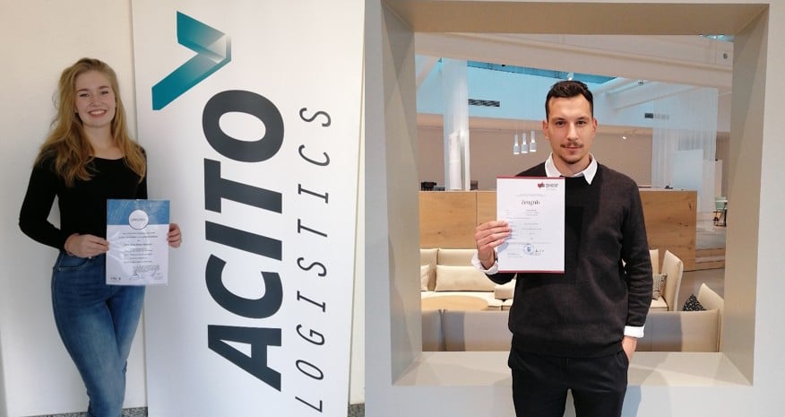 Die Acito Logistics GmbH darf sich über einen Erfolg als Ausbildungsbetrieb freuen, denn mit Anica Rütschlin und David Groß schlossen Auszubildende ihre Lehre erfolgreich ab. Das Ziel von Acito ist es, möglichst alle Lernenden nach dem Abschluss zu übernehmen.