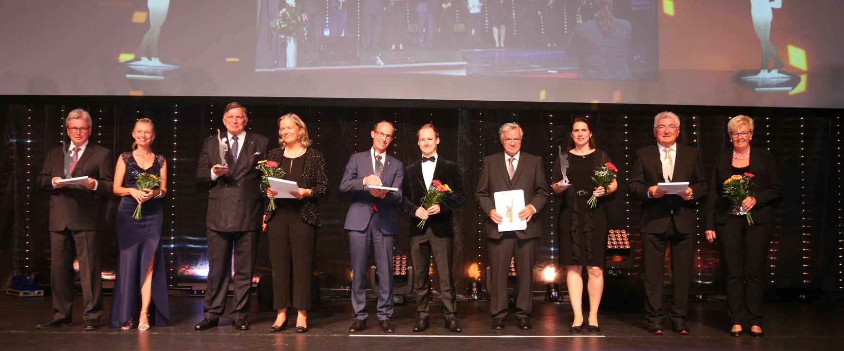 Geschäftsführer Theo Schuon und seine Frau Doris Schuon (Paar ganz rechts) nahmen beim Großen Preis des Mittelstands die Auszeichnung für die Alfred Schuon GmbH (Foto: © Boris Löffert/Oskar-Patzelt-Stiftung)
