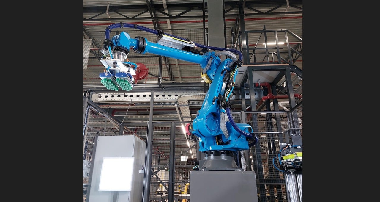 Foto: © Arvato Supply Chain Solutions / Bildlegende: Depalettierroboter Stark