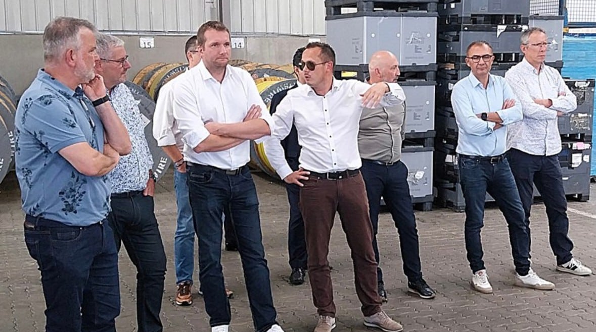 Foto: © ASTRE / Bildlegende: Regis Gross, Geschäftsführer von ASTRE DACH-Mitglied J.S. Logistics (4. von rechts), zeigt ASTRE-Partnern aus dem Osten Frankreichs sowie Vertreterinnen und Vertretern der ASTRE DACH-Mitglieder den Hauptsitz seines Unternehmens in Kirkel