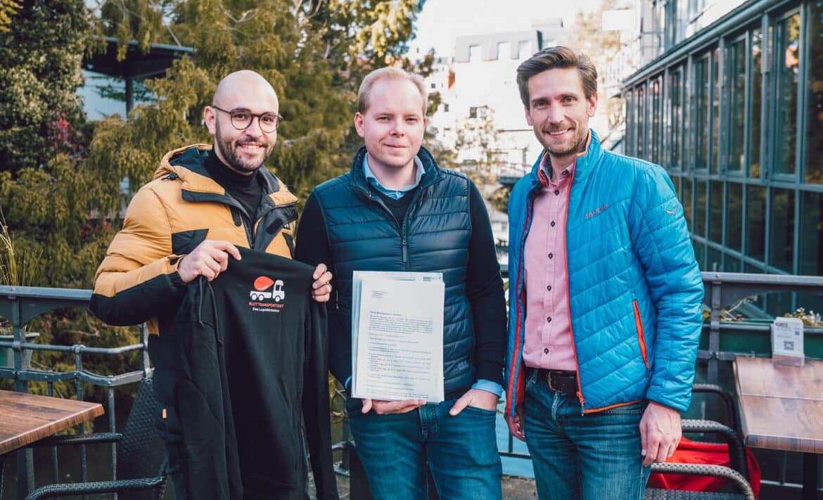 Foto: © Blut transportiert / Bildlegende: Der Vorstand von Blut transportiert e.V. (v.l.n.r.): Nicolas Gallenkamp (Mitte), Mehmet Akdag (links), S. Niklas Unger (rechts). Nicht im Bild: Christoph S. Peper