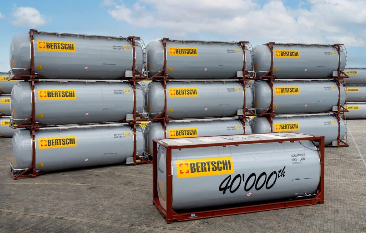 Mit Investitionen von CHF 100 Millionen hat Bertschi 2021 einerseits die eigene Logistik-Infrastruktur erweitert. Dazu gehören die Verdoppelung der Lagerkapazitäten für containerisierte Chemieprodukte in Rotterdam und in Middlesbrough (UK) sowie der Bau eines neuen Chemie-Logistik-Hubs in China. Andererseits wurde die Flotte von Tank- und Silocontainern um mehr als 2‘000 Einheiten vergrössert. Anfang 2022 konnte Bertschi den 40‘000. Container in Verkehr bringen.