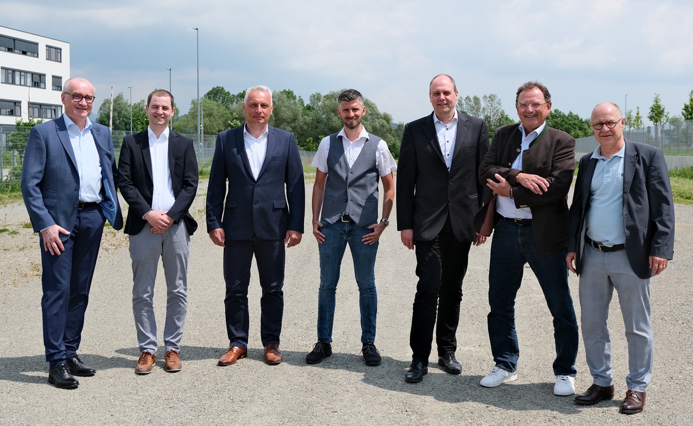 Foto: © Contargo / Bildlegende (v.l.n.r.): Gerhard Schönbucher, Leiter Liegenschaften, Planung & Technik Hafen Straubing-Sand GmbH, Benedikt Rupp, Leitung Netzwerkerweiterung Contargo GmbH & Co.KG, Jörg Schubert, Geschäftsführer Contargo Combitrac Straubing-Sand GmbH, Andreas Sandner, Geschäftsführer Ziegler Holding GmbH, Markus Schmid, Geschäftsführer SFI GmbH, Thomas Löffler, Geschäftsführer Contargo GmbH & Co.KG, Andreas Löffert, Geschäftsführer Hafen Straubing-Sand GmbH