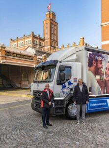 (Ismaning/D; Rheinfelden/CH) Im vergangenen Februar verkündete Renault Trucks die Unterzeichnung eines Vertrags mit der Carlsberg-Gruppe über die Lieferung von zwanzig vollelektrischen 26-Tonnern des Typs D Wide Z.E. – eine Schlüsseletappe auf dem Weg zur Transformation des städtischen Transports. Am 24. November 2020 übergab Bruno Blin, der Präsident von Renault Trucks, den ersten von zwanzig 100 Prozent elektrischen D Wide Z.E. an Thomas Amstutz, CEO des Feldschlösschens.