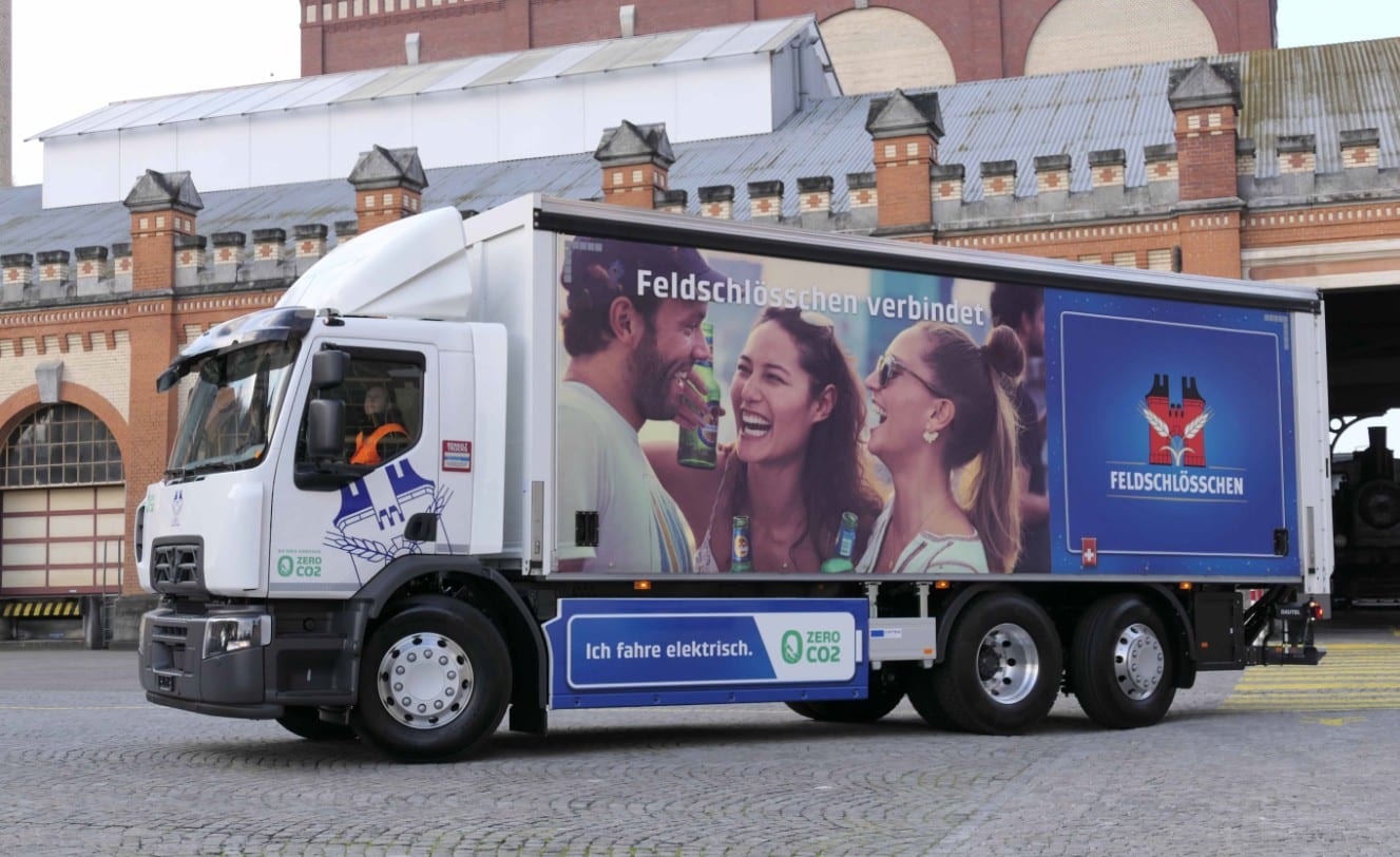 Die Brauerei Feldschlösschen und die Carlsberg-Gruppe, die sich stark für den Umweltschutz und die Bekämpfung der Klimaerwärmung einsetzen, haben sich als Ziel gesetzt, einen Verteilerverkehr zu erreichen, der keinen CO2-Ausstoss produziert. Die Brauerei wird dieses Ziel insbesondere durch die Nutzung elektrischer Lkw für den städtischen Verteilerverkehr erreichen, die mit Strom aus erneuerbaren Energien fahren. Zudem wird für den Transport über lange Strecken vermehrt der Schienentransport gewählt.