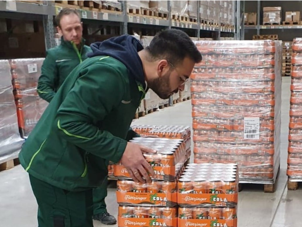 Foto: © BTK / Bildlegende: Logistikmitarbeiter mit Paletten voller Cola-Mix-Dosen