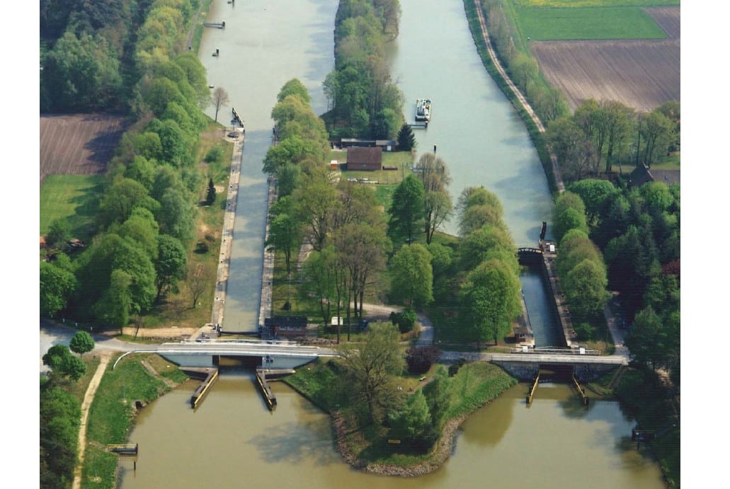 Foto: © 2020 Wasserstraßen- und Schifffahrtsamt Rheine / Bildlegende: Schleuse Venhaus
