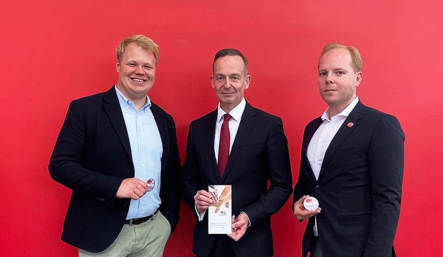 Foto: © Blut transportiert / Bildlegende: Bundesverkehrsminister Dr. Volker Wissing (Mitte) und die Initiatoren von Blut transportiert Nicolas Gallenkamp (rechts) und Christoph S. Peper (links)