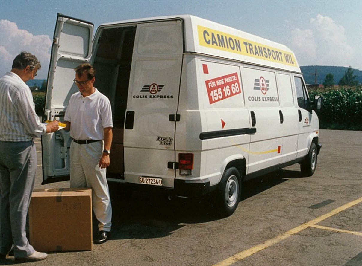 Ein weiterer Pfeiler in der Unternehmensgeschichte ist 1993 die Gründung des Paketservices «Colis Express». Mit diesem schnellen Angebot für Kleinsendungen im Stückgutbereich setzt Camion Transport – für die damalige Zeit – einen weiteren Meilenstein. «Wir wollten diese Sendungen nicht an einen Paketdienstleister verlieren, lancierten deshalb mit zwanzig Fahrzeugen unseren eigenen Paketdienst», erklärt Franz Meienhofer, Vizedirektor bei Camion Transport. Im Mai 1995 liegt das Transportvolumen bei durchschnittlich 2’540 Paketen pro Tag, der Preis bei durchschnittlich 13 Franken pro Paket – heute undenkbar. Es drängen bald neue Paketdienstleister in den Schweizer Markt, der Preisdruck wird grösser und man sucht die Zusammenarbeit mit einem anderen Anbieter: Colis Express wird schliesslich in Qualipac AG integriert. «Allerdings war der Aufbau an Know-how mit dem eigenen schweizweiten IT-Netzwerk für die spätere Cargo-Domizil-Übernahme entscheidend – wir haben sehr viel gelernt dabei», so Meienhofer.