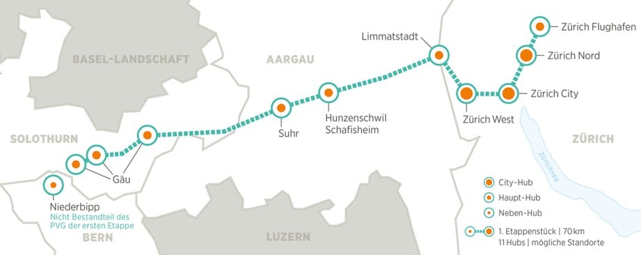 Foto: © CST / Bildlegende: Verlauf der ersten Teilstrecke von CST, die 2031 in Betrieb geht.