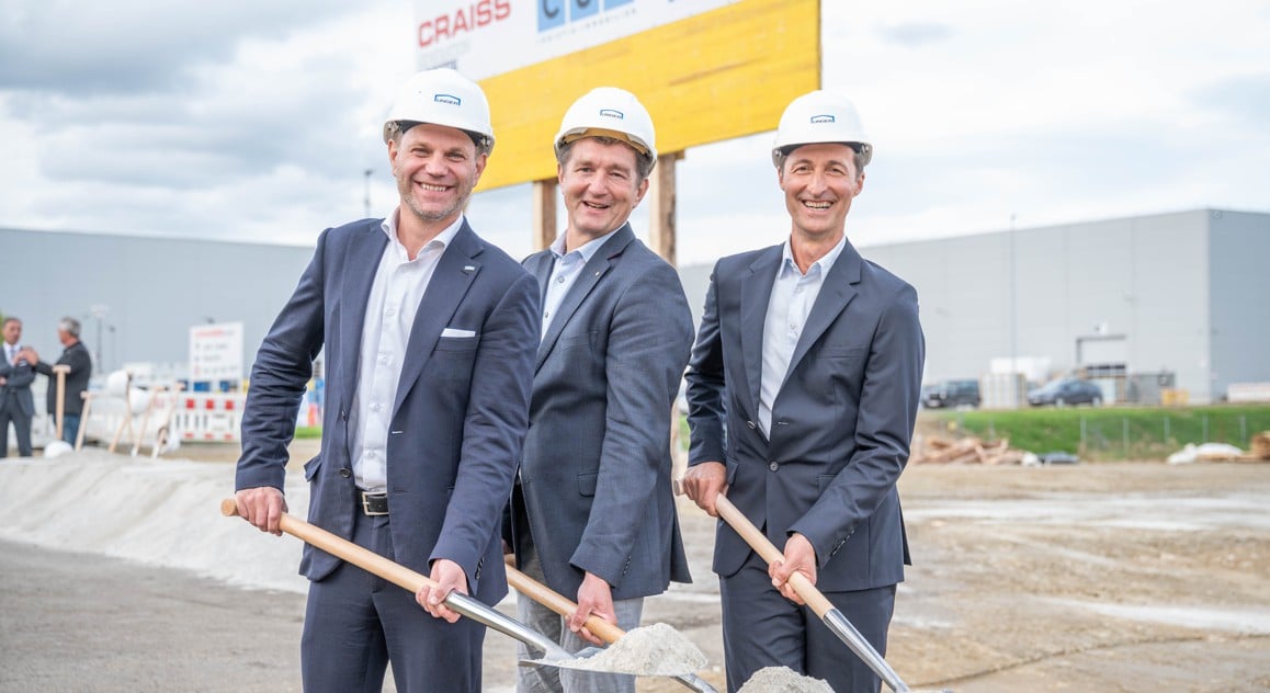 Foto: © Craiss / Bildlegende: Am Projekt der Standorterweiterung beteiligt (v.l.n.r.): Matthias Unger (CEO und Eigentümer der Unger Stahlbau Ges.m.b.H.), Michael Craiss (Geschäftsführender Gesellschafter der Craiss Generation Logistik GmbH & Co. KG) und Hagen Temmel (Gesellschafter der CUT Logistikimmobilien GmbH) beim Spatenstich zur Standorterweiterung in Weiz