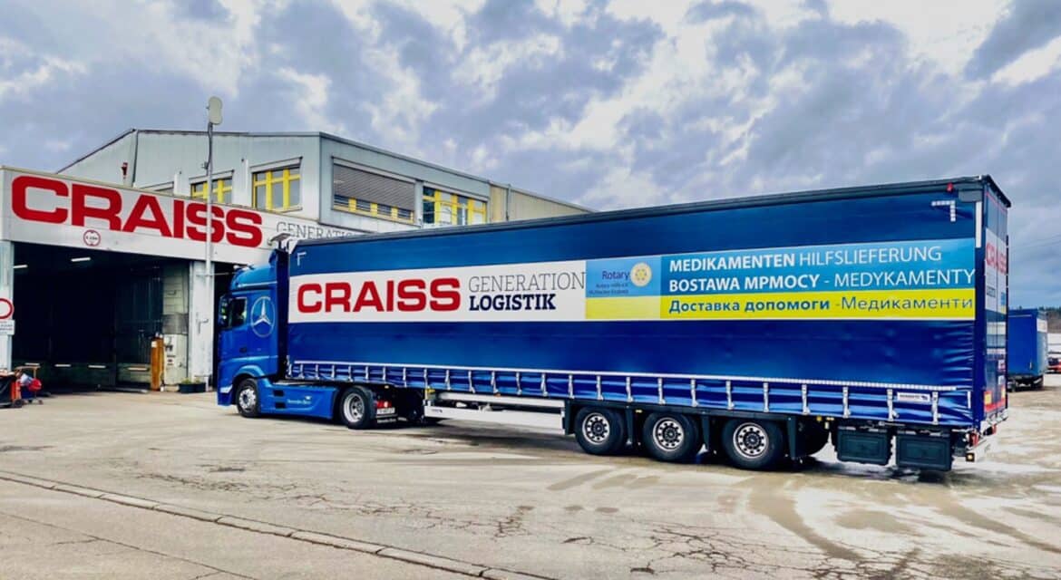 In Kooperation mit dem Rotary Club Mühlacker-Enzkreis hat die Craiss Generation Logistik GmbH & Co. KG eine Hilfslieferung für Kriegsbetroffene in der Ukraine durchgeführt. Insgesamt 70.000 Euro haben der schwäbische Logistikdienstleister sowie weitere lokale Unternehmen und Privatpersonen bei einem Spendenaufruf der Vereinigung zusammengetragen.