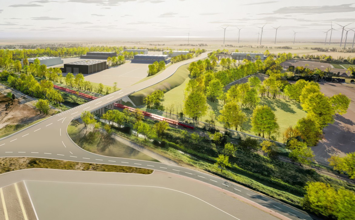 Garfik: © Stadt Cuxhaven/AfW / Bildlegende: Die neue Schwerlastbrücke wird die Umschlag- und Gewerbeflächen sowie das Siemens Gamesa Werk mit der Bundesstraße 73 verbinden