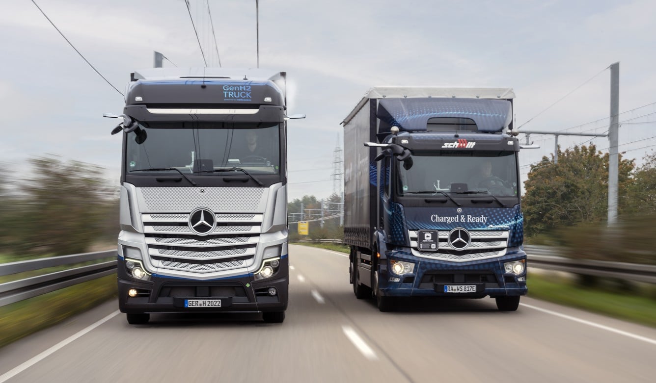 (Stuttgart) Der Lkw-Hersteller Daimler Truck hatte bereits im April begonnen, den weiterentwickelten Prototyp seines 2020 vorgestellten Mercedes-Benz GenH2 Truck auf abgesperrten Teststrecken des Unternehmens zu erproben. Dort konnte der wasserstoffbetriebene Brennstoffzellen-Lkw, der in der Serienvariante für Reichweiten von bis zu 1.000 Kilometer und mehr ohne Tank-Zwischenstopp konzipiert ist, bereits mehrere tausend Test-Kilometer erfolgreich absolvieren. Nun wird seine Erprobung auf öffentliche Straßen ausgeweitet. Unter anderem auch auf die B462 bei Rastatt, wo im Rahmen des Projekts eWayBW der Warentransport mit dem Betrieb von Oberleitungs-Lkw testweise elektrifiziert werden soll. Hierbei sollen auch Vergleichstests des rein batterieelektrischen Mercedes-Benz eActros mit den Oberleitungs-Lkw bzw. Brennstoffzellen-Lkw anderer Fahrzeughersteller stattfinden. Daimler Truck selbst plant keine Oberleitungs-Lkw. Bereits seit Juli 2019 bewährt sich der eActros bei der Firma Logistik Schmitt in der Region um Rastatt im intensiven Praxistest.