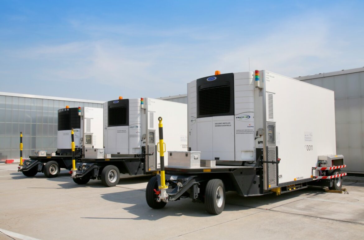 So erfüllt Fraport beispielsweise seit 2018 die Anforderungen des CEIV-Pharma-Zertifikats[2] des Airline-Verbands IATA, ebenso wie elf weitere in Frankfurt tätige Dienstleistungsunternehmen. Hinzu kommen Speditionen und Luftverkehrsgesellschaften, die dem EU-GDP-Standard[3] entsprechen. Somit sind mehr als 75 Prozent der Transportwege am Flughafen zertifiziert. Zudem nutzt Fraport aktuell 20 hochmoderne Thermotransporter, um auch beim Weg über das Vorfeld die notwendige Temperatur der Güter zu gewährleisten.