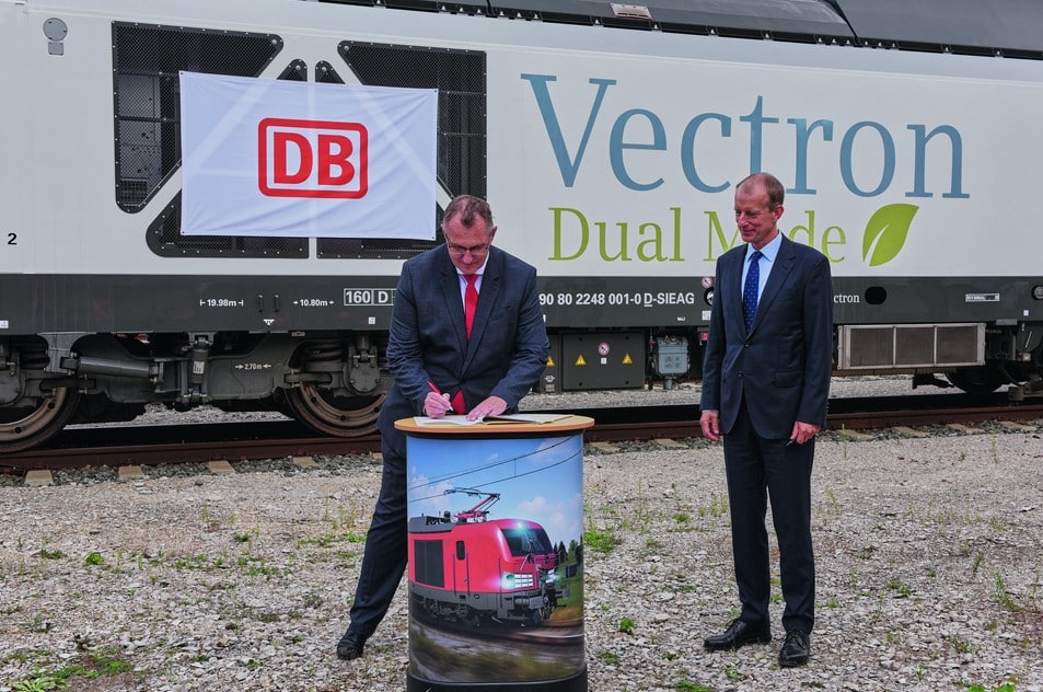 „Mit dem Vectron Dual Mode investiert DB Cargo in einen zukunftsfähigen, nachhaltigen und wirtschaftlichen Schienengüterverkehr. Als Alternative zur herkömmlichen Diesel-Lok bietet der Vectron Dual Mode das Beste aus zwei Welten: Auf elektrifizierten Streckenabschnitten ist er rein elektrisch unterwegs, um Kraftstoff zu sparen und Wartungskosten zu reduzieren. Auf oberleitungsfreien Streckenabschnitten kann ohne Lokwechsel in den Dieselbetrieb umgeschaltet werden“, sagt Albrecht Neumann, CEO Rolling Stock bei Siemens Mobility.
