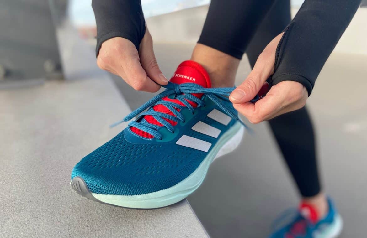 Für die Jubiläumsaktion wurde bereits im vergangenen Jahr ein Sneaker aus der adidas Supernova-Kollektion ausgewählt und gemeinsam mit dem adidas-Team für DB Schenker gestaltet. Die limitierte Schuh-Edition ist in den Markenfarben des Logistikers gehalten, trägt das Logo auf der Schuhzunge und besteht größtenteils aus recyceltem Material.
