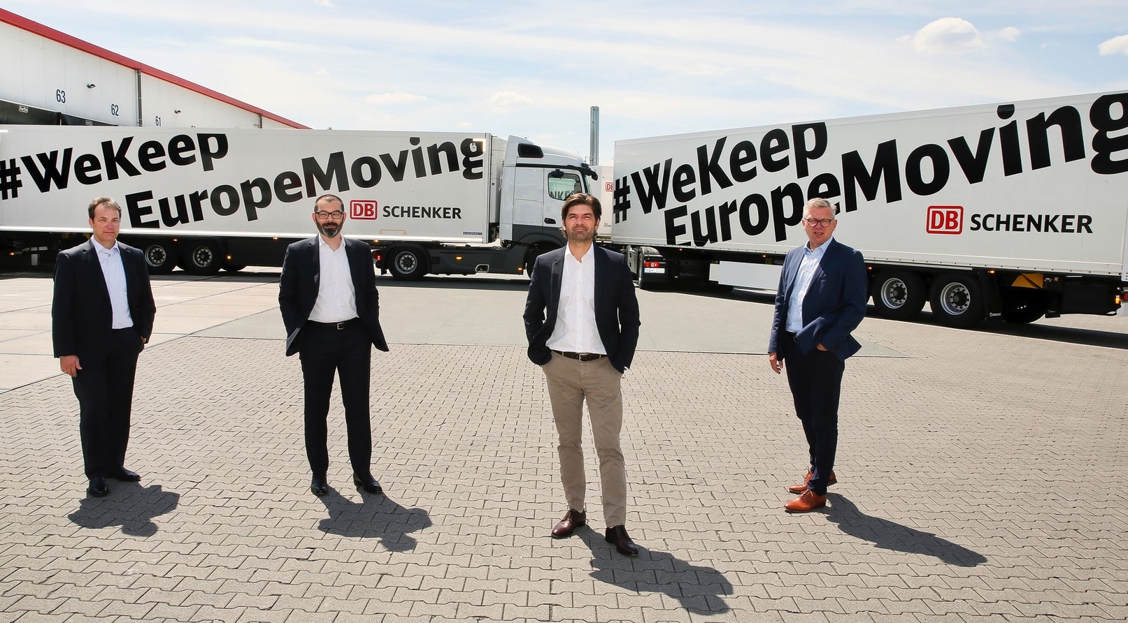 Foto: © DB Schenker / Bildlegende: (v.l.n.r.) Wolfgang Janda (Senior Vice President Head of Network & Line Haul Management), Cyrille Bonjean (Executive Vice President Land Transport Europe), Helmut Schweighofer (CEO Region Europe), Jörg Herwig (Executive Vice President Land Transport Cluster DE/CH)