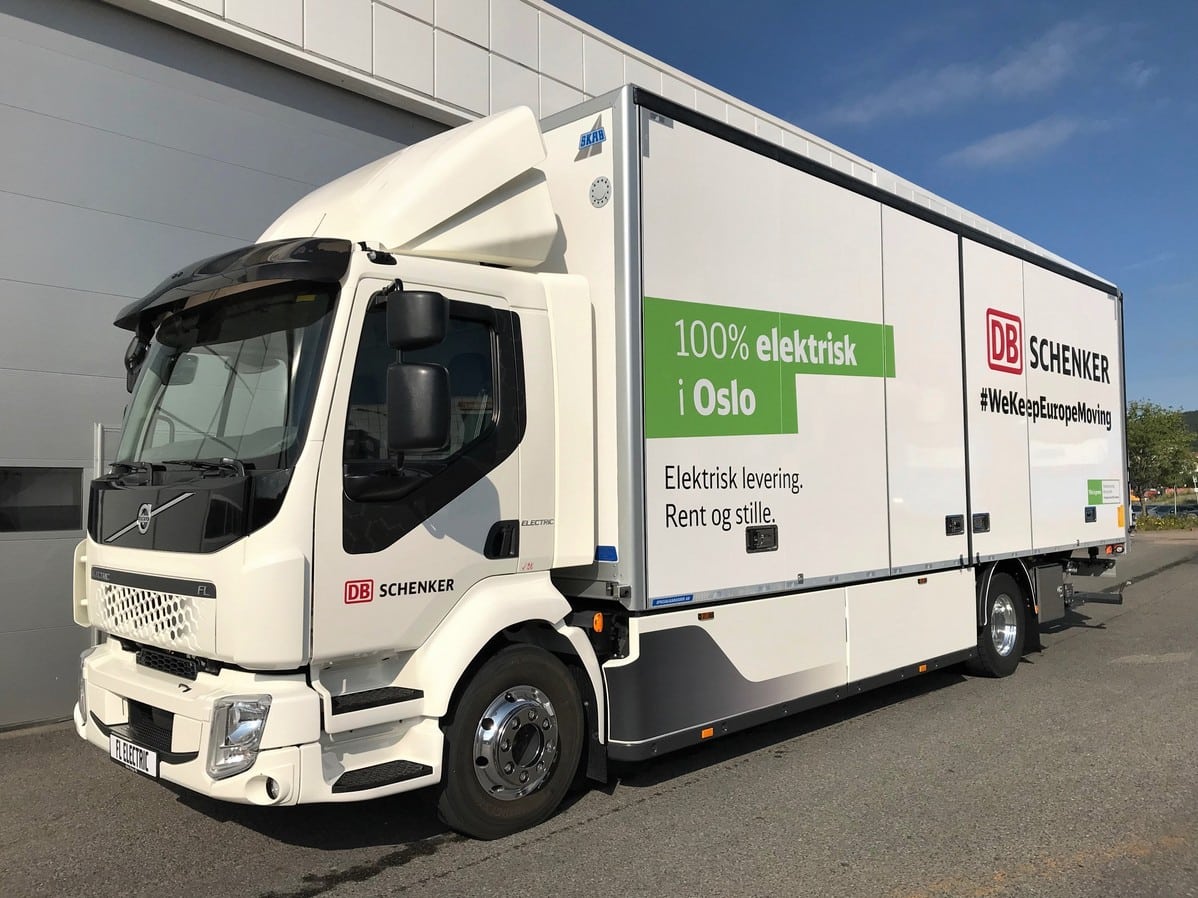 Insgesamt hat DB Schenker elf neue LKWs mit Elektro-Antrieb für die Stadtlogistik in Oslo bestellt. Sie werden dieselgetriebene LKWs ersetzen. Symbolisch für das Erreichen des Nachhaltigkeitsziels wurde der erste von drei Volvo FL Electric Truck mit der Aufschrift „100% elektrisch in Oslo“ versehen.