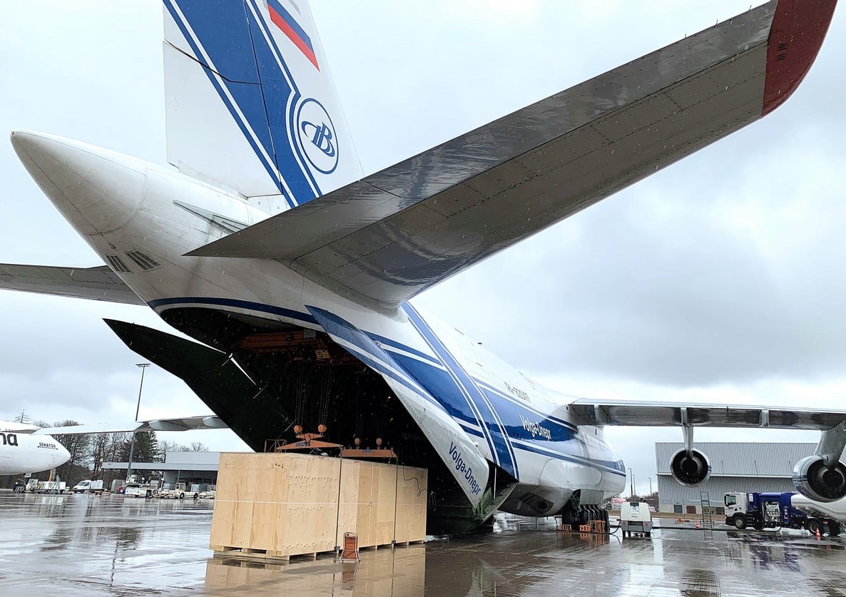 Eine Antonov An-124 hat eine Länge von fast 70 Metern und eine Flügelspannweite von rund 73 Metern. Damit ist das Flugzeug ähnlich groß wie ein „Jumbo-Jet“ vom Typ Boeing 747. Bei einem Gesamtvolumen der Sendung von 400 Kubikmetern war für DB Schenker nicht das Gewicht, sondern die Größe der Fracht ausschlaggebend für den Einsatz des viermotorigen Flugzeugs.
