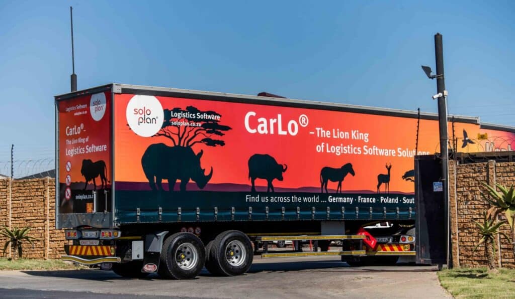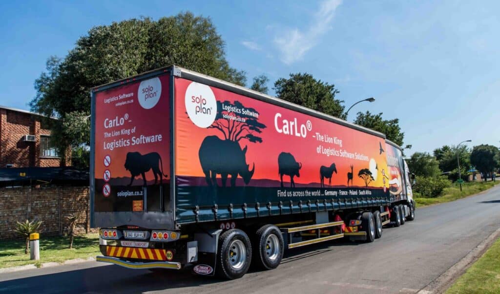 Der Softwarehersteller Soloplan installierte letztes Jahr beim südafrikanischen Logistikunternehmen Kenbert Warehousing & Transport seine Transportsoftware "CarLo". Für die Werbung wurde ein Modell-LKW kreiert, als Werbung der heute als echtes Fahrzeug auf den Strassen in Südafrika die Blicke auf sich zieht.