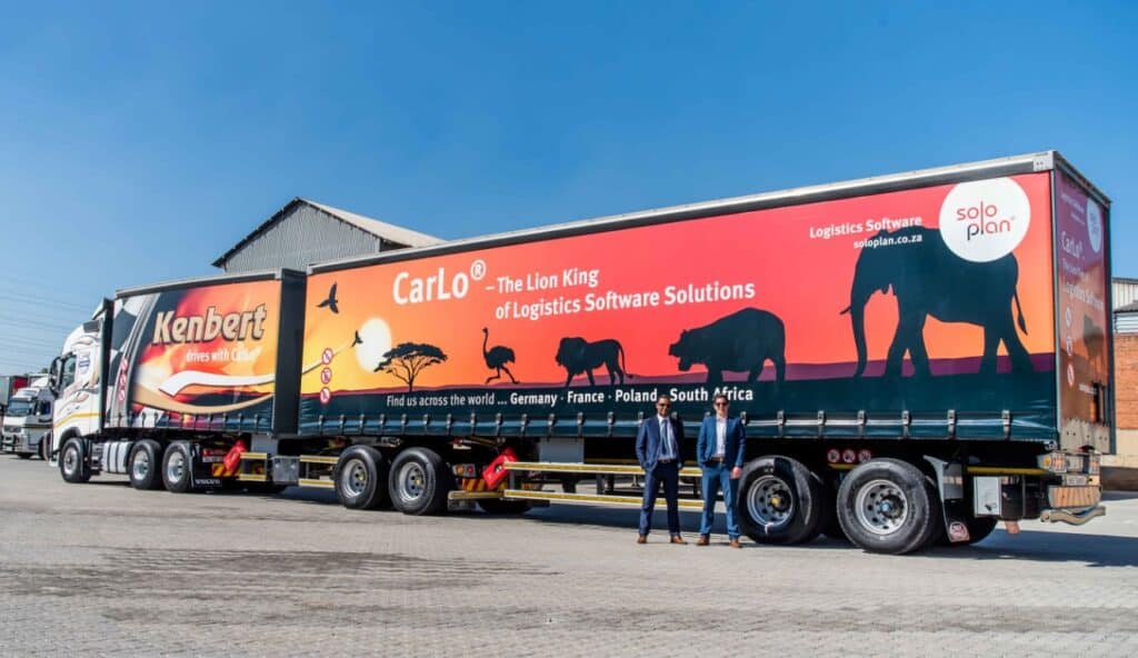 (Kempten/Johannesburg) Anfang 2020 wurde die Transportsoftware CarLo bei dem südafrikanischen Logistikunternehmen KENBERT WAREHOUSING & TRANSPORT eingeführt. Seitdem fahren rund 50 eigene LKW mit der Logistiksoftware aus dem Hause Soloplan – darunter ein ganz besonderes Modell. Der „CarLo Truck“ befährt seit Neustem die südafrikanischen Straßen und zieht definitiv alle Blicke auf sich.