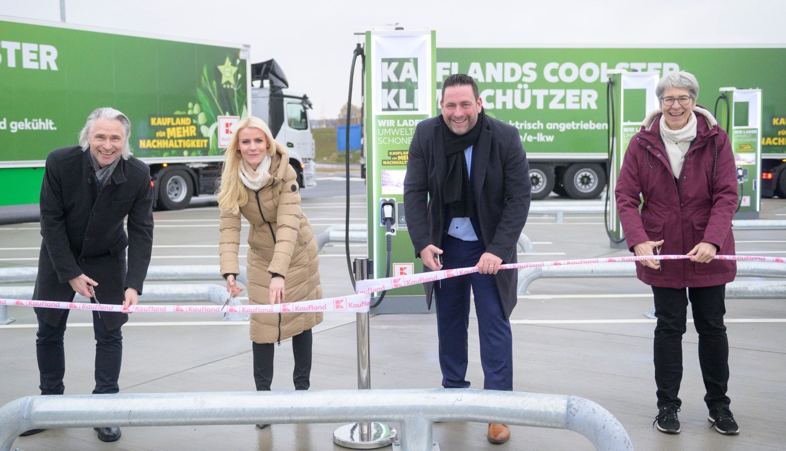 Kaufland setzt seine LKW unter Strom. Gestartet wird mit einem wegweisenden Projekt am Logistikstandort in Möckmühl. Dort eröffnet das Unternehmen seinen ersten Ladepark mit acht Ladestationen, jede mit einer separaten Spur für eine E-Sattelzugmaschine inklusive elektrisch betriebenem Kühlauflieger.