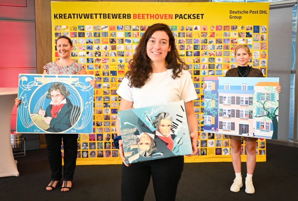 Die Siegerentwürfe wählte die vierköpfige Jury bestehend aus Monika Schaller, Executive Vice President Konzernkommunikation, Nachhaltigkeit & Marke bei Deutsche Post DHL Group, Malte Boecker, Direktor Beethoven-Haus Bonn, Jens Mohr, Freischaffender Künstler, und Jutta Frankenberg, Produktmanagerin für die Packsets bei Paket. „Der Aufruf von Deutsche Post DHL Group, sich in der Corona Zeit kreativ mit Beethoven auseinander zu setzen, hat mit über 600 Einreichungen eine unglaubliche Resonanz erfahren“, so Malte Boecker. „Die Jury hat bei der Prämierung der Werke auf künstlerische Qualität und Originalität ebenso Wert gelegt wie auf die Beurteilung, ob sie auf einem Packset gut wirken und Lust auf Beethoven wecken. Die Auswahl ist uns angesichts der vielen großartigen Entwürfe nicht leicht gefallen. Umso mehr freue ich mich, dass wir uns am Ende auf drei besonders stimmige Siegerentwürfe einigen konnten und über das Packset, das rechtzeitig zu Beethovens 250. Geburtstag das Bild von Beethoven und seiner Musik in alle Welt trägt.“