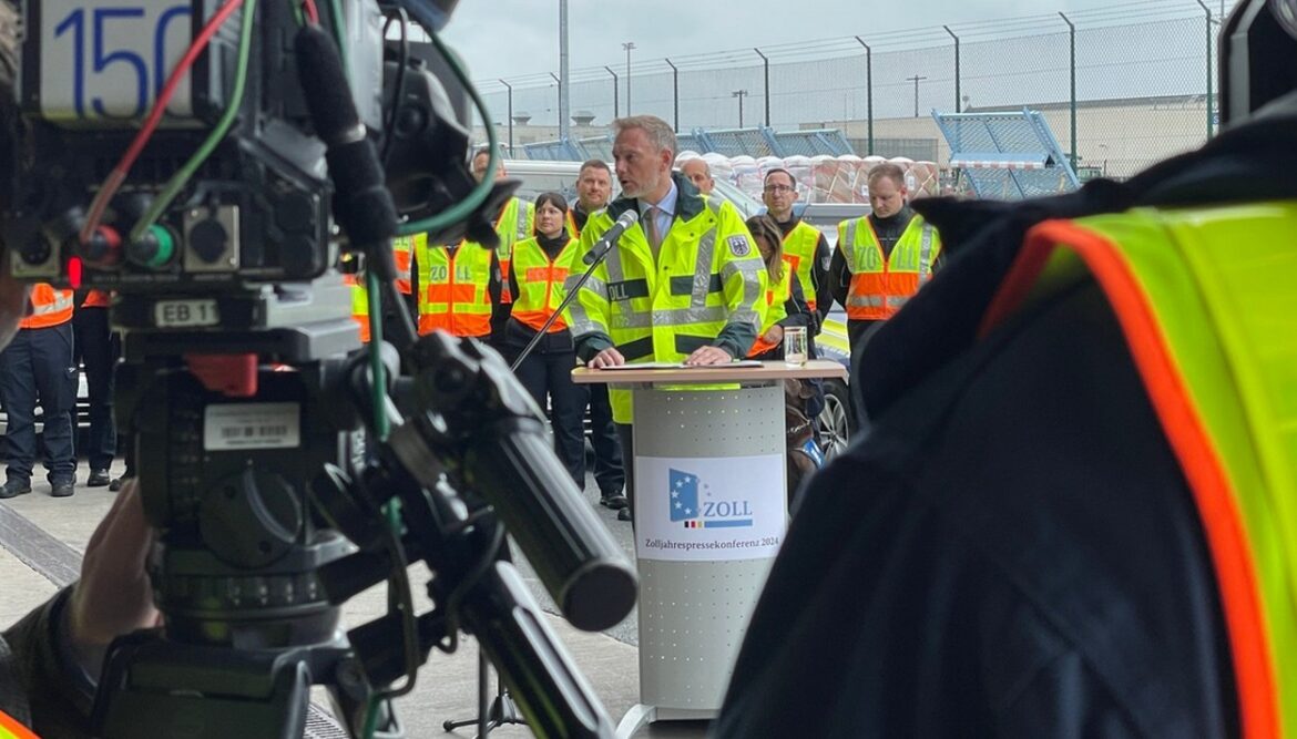 Foto: © ZOLL / Bildlegende: Bundesfinanzminister Christian Lindner spricht bei der Verkündung der Jahreszahlen des Deutschen Zolls