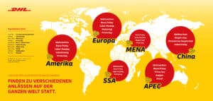 Aufgrund der sich verstärkenden Trends von Globalisierung und Digitalisierung ist es nicht überraschend, dass die weltweiten E-Commerce Zahlen steigen. Dieser grundsätzliche Trend war bereits in den vergangenen Jahren sichtbar. Durch die Folgen der COVID-19 Pandemie wuchs das Sendungsvolumen im aktuellen Jahr jedoch wesentlich stärker als erwartet an. Dank der weltweiten Tätigkeit von DHL Express, ist das Unternehmen permanent in der Lage die Entwicklungen in verschiedenen Regionen und Ländern der Erde zu beobachten, da in unterschiedliche Regionen entsprechend unterschiedliche Feiertage und damit Hauptsaisons relevant sind. So haben die Entwicklungen der bisher wichtigsten Einkaufstage dieses Jahres einen Anstieg der Online-Volumen um mindestens 35 Prozent gezeigt.