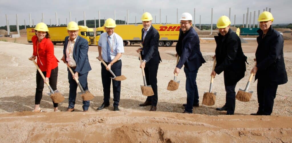 Die Dächer des Lagers sowie des Pförtnergebäudes werden begrünt. Zudem bietet die Dachfläche des Crossdock-Terminals Potential für die Installation einer Photovoltaikanlage mit bis zu 1 MWp (Megawatt peak). Der feierliche Baubeginn wurde begleitet von Thorsten Stolz, Landrat Main-Kinzig-Kreis, Stefan Erb, Bürgermeister Erlensee, Bauherr Ferdinand Fäth, Geschäftsführer Fäth Immobilien, Dr. Thomas Vogel, CEO DHL Freight DACH, Götz Hanningsmann, Standortleiter Niederlassung Erlensee und Manager Area Central DHL Freight und Gero Schiffelmann, Mitglied der Geschäftsführung DHL Freight Deutschland.