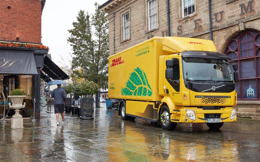 Foto: © Deutsche Post DHL Group / Bildlegende: Die 16t Volvo FL Elektro-LKW werden jeweils von vier 200 kWh-Batterien gespeist, die eine Reichweite von knapp 200km ermöglichen.