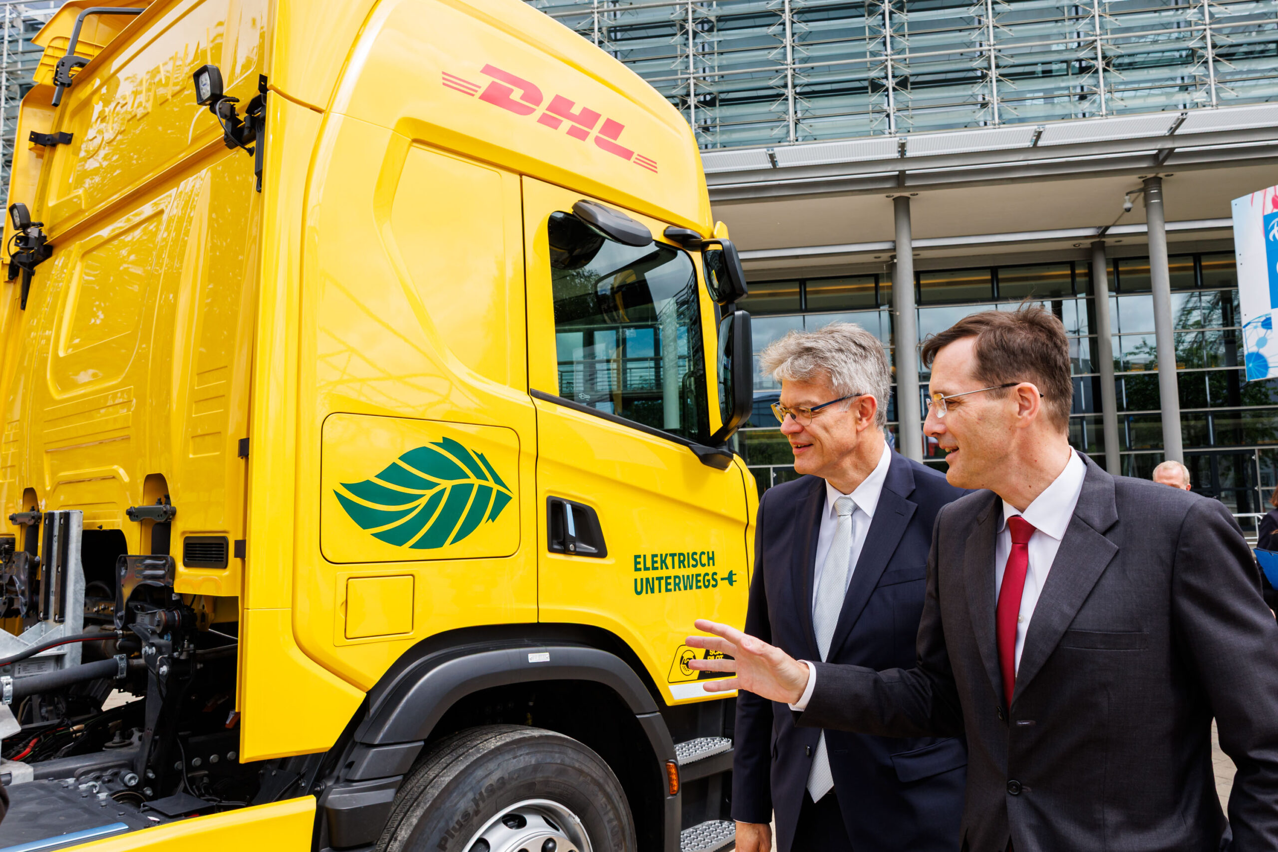 DHL Group hat heute auf dem International Transport Forum der OECD in Leipzig das gemeinsam mit dem Nutzfahrzeughersteller Scania entwickelte „Extended Range Electric Vehicle“ (EREV) vorgestellt. Der EREV ist ein elektrischer Lkw, der mit einem kraftstoffbetriebenen Backup-Generator ausgestattet ist, der Strom erzeugt, um die Batterien aufzuladen, wenn diese zur Neige gehen.
