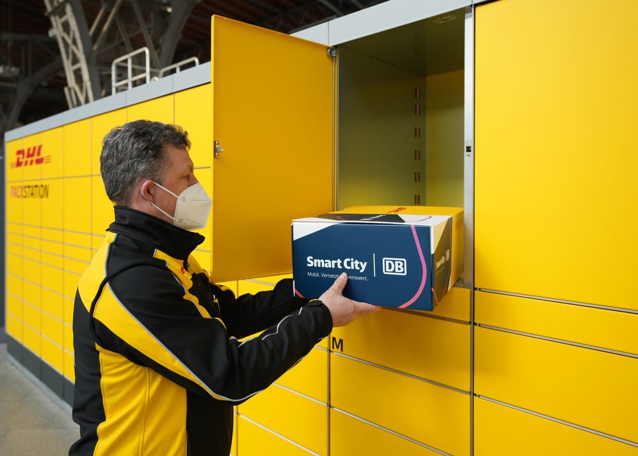 Ab Ende 2022 können Kunden bestellte Waren unterschiedlichster Anbieter unabhängig von Liefer- und Öffnungszeiten am Bahnhof abholen oder retournieren. Denn die Initiative Smart City | DB startet einen neuen Click & Collect-Service. Damit können Onlineshops und Einzelhändler erstmalig unabhängig vom Zustellunternehmen in einen Teil der Packstation einliefern. Die Deutsche Post DHL stellt der DB dafür bis zu einem Drittel der Fächerkapazitäten an den jeweiligen Automaten zur Verfügung. Der neue Service ist durch ein neues Co-Branding der Packstationen einfach erkennbar.