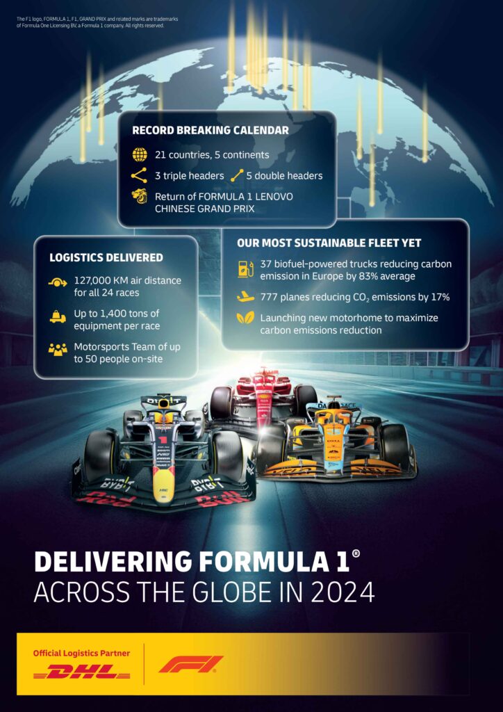 An diesem Wochenende fällt der Startschuss: Am 29. Februar eröffnet der mit Spannung erwartete Große Preis von Bahrain die diesjährige Rennsaison. Der Rennkalender 2024 mit Rennen in 21 Ländern auf fünf Kontinenten umfasst drei Triple Header und fünf Double Header mit drei bzw. zwei Rennen an aufeinanderfolgenden Wochenenden. Außerdem kehrt die Formel 1 erstmals seit der Corona-Pandemie nach China zurück. DHL bewältigt den enormen logistischen Aufwand hinter den Kulissen der Formel 1 mit dem Transport von bis zu 1.400 Tonnen wertvoller und empfindlicher Fracht zu jedem Rennen, darunter die Rennboliden, Reifen, Ersatzteile, Kraftstoff, Übertragungstechnik sowie Marketing- und Hospitality-Ausstattung.