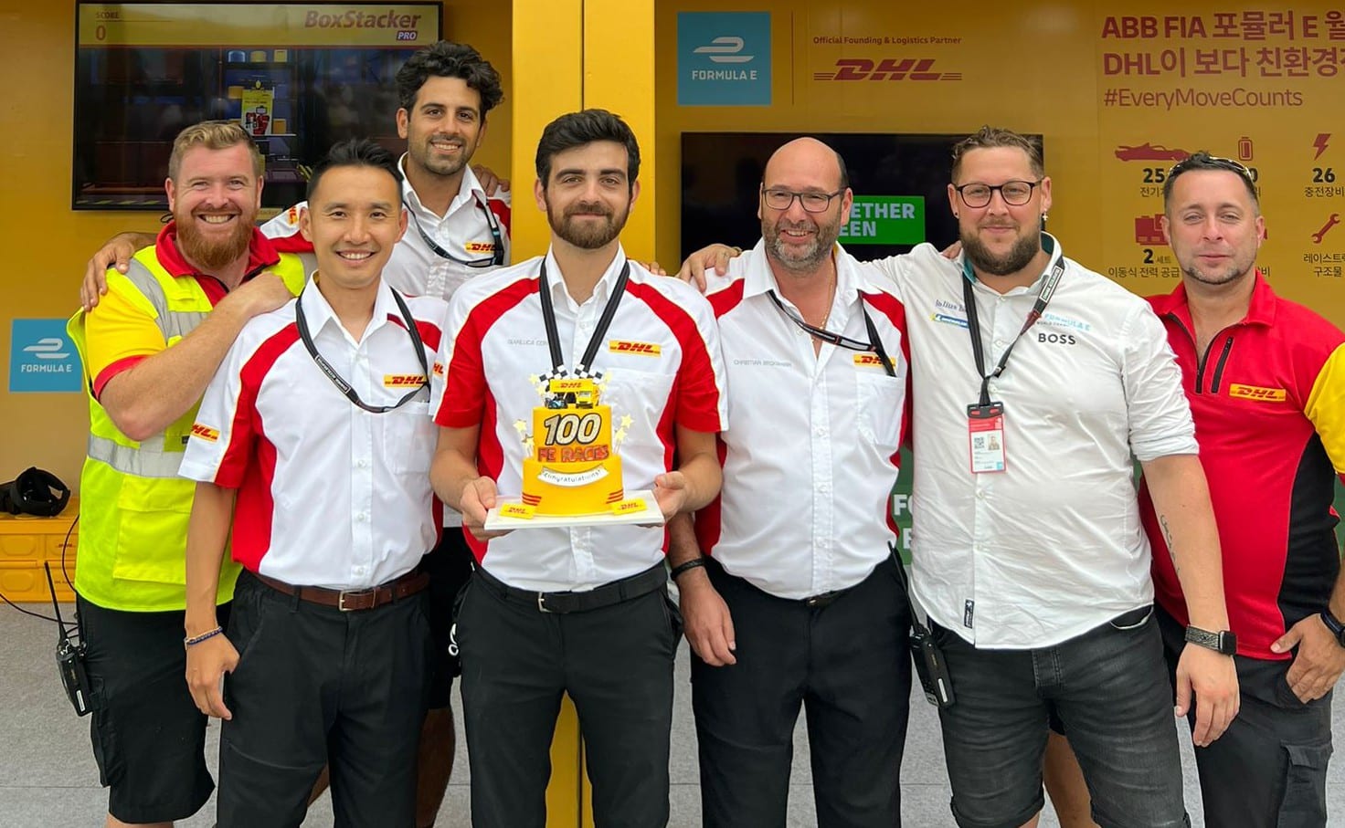 Das DHL Motorsports Team feiert das 100. Rennen für die Formel E-und DHL