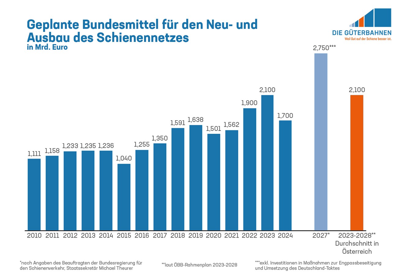 Das jahrzehntelang netto stark geschrumpfte Schienennetz verkraftet das bisherige Wachstum bereits jetzt nicht mehr. Gleichzeitig sollen mehr Verkehr und Güter auf die Schiene. Bundestag und Bundesrat haben mit dem 2016 beschlossenen und im Herbst 2023 erweiterten Bundesschienenwegeausbaugesetz und dem darin enthaltenen „Bedarfsplan“ einen umfangreichen Auftrag an Regierung und DB für den Neu- und Ausbau erteilt. „Der wird offensichtlich nicht ernst genommen“, so Westenberger. Im Bundeshaushalt 2024 stehen noch 1,7 Milliarden Euro für diesen Zweck. „Das ist deutschlandweit salopp gesagt fast nichts. Zum Vergleich: Allein das vier Mal kleinere Österreich baut sein Schienennetz mit 2,2 Milliarden Euro pro Jahr aus.“