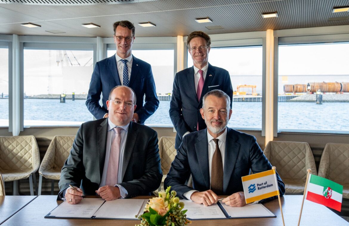 Die Häfen in Duisburg und Rotterdam setzen ihre enge Zusammenarbeit fort: In Anwesenheit von Hendrik Wüst, Ministerpräsident des Landes Nordrhein-Westfalen, wurde letzte Woche eine neue Absichtserklärung (Letter of Intent – LoI) unterzeichnet. Damit bestärken die beiden wichtigen europäischen Logistik-Hubs ihr Ziel, gemeinsam nachhaltige Transportkorridore über den Verkehrsträger Wasserstraße sowie zukunftsfähige Initiativen zur Energiewende zu entwickeln – zum Wohle der Industrie und der Lieferkette zwischen und innerhalb von Rotterdam und Duisburg.