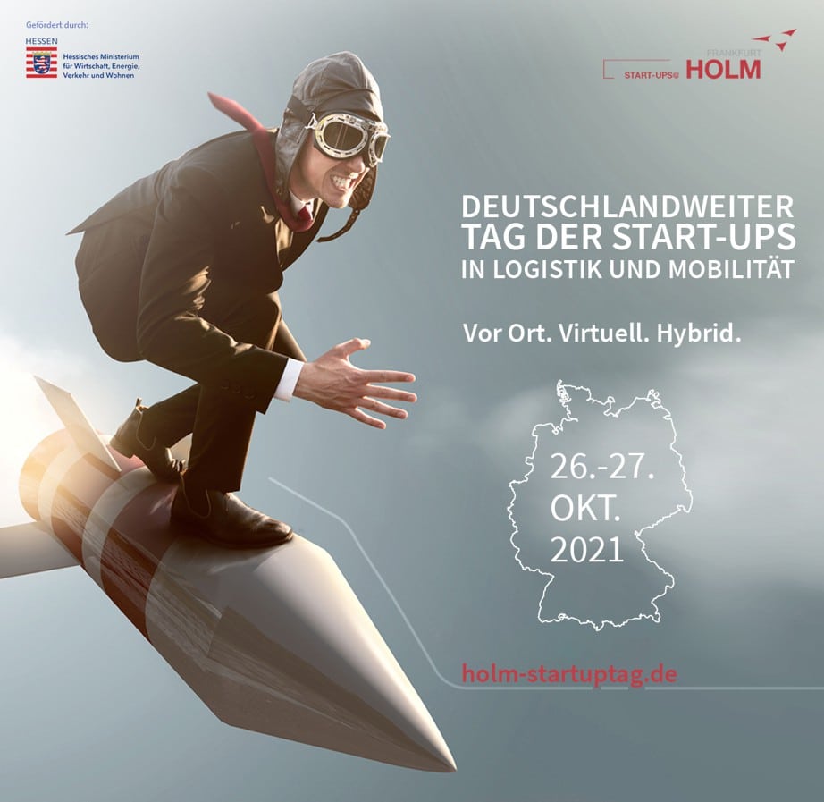 Der „Deutschlandweite Tag der Start-ups in Logistik und Mobilität 2021“ im Frankfurter House of Logistics and Mobility (HOLM) GmbH findet dieses Jahr als Hybrid-Event vom 26.-27.10.2021 statt. An zwei Tagen bietet das HOLM gemeinsam mit vielen Programmpartnern ein vielfältiges Programm aus Keynotes, Workshops, Coachings und Vernetzungsangeboten.