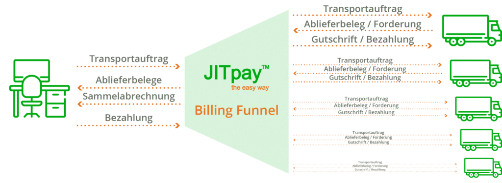 Verwaltung der Niederlassung; JITfleet™- Multi Carrier Management; Integrierte Anbindung an JITpay™ – (Reverse-) Factoring; Integrierte Anbindung an JITpay™ – Zentralabrechnung