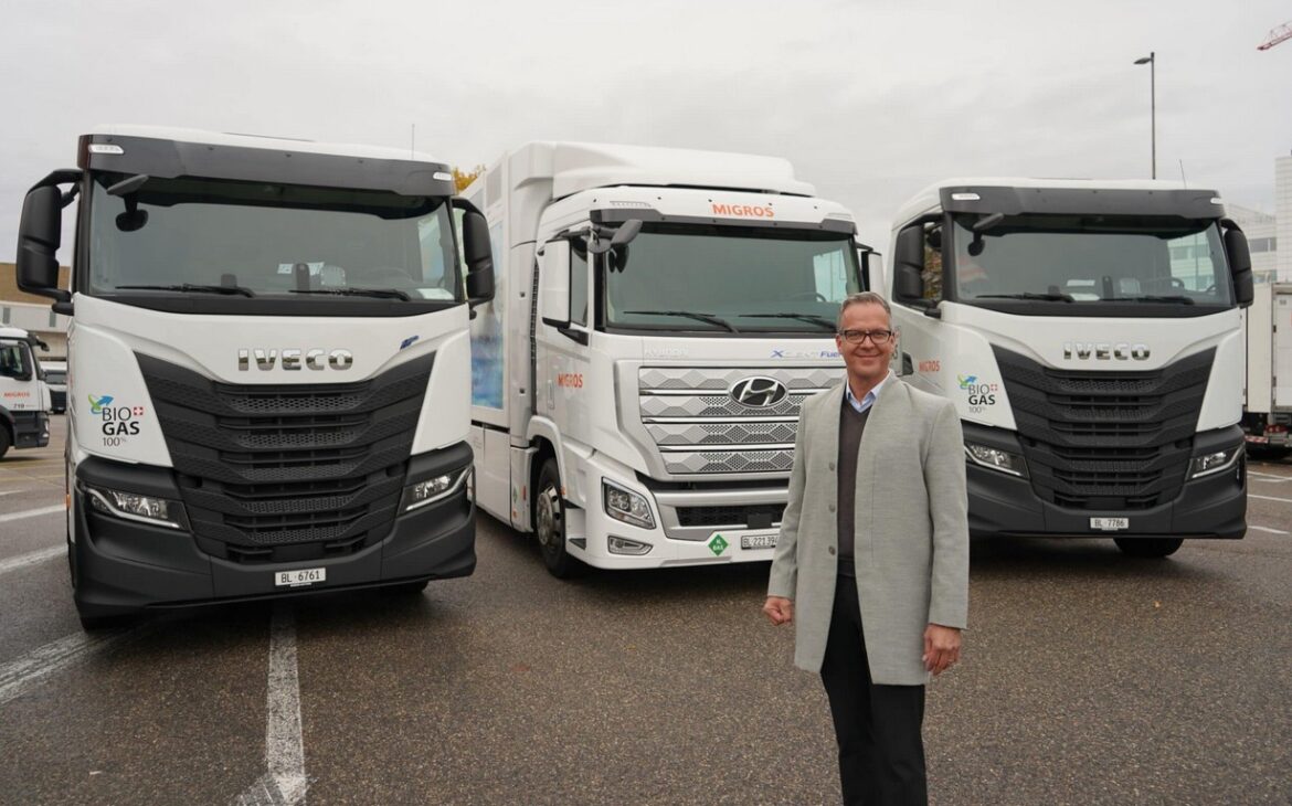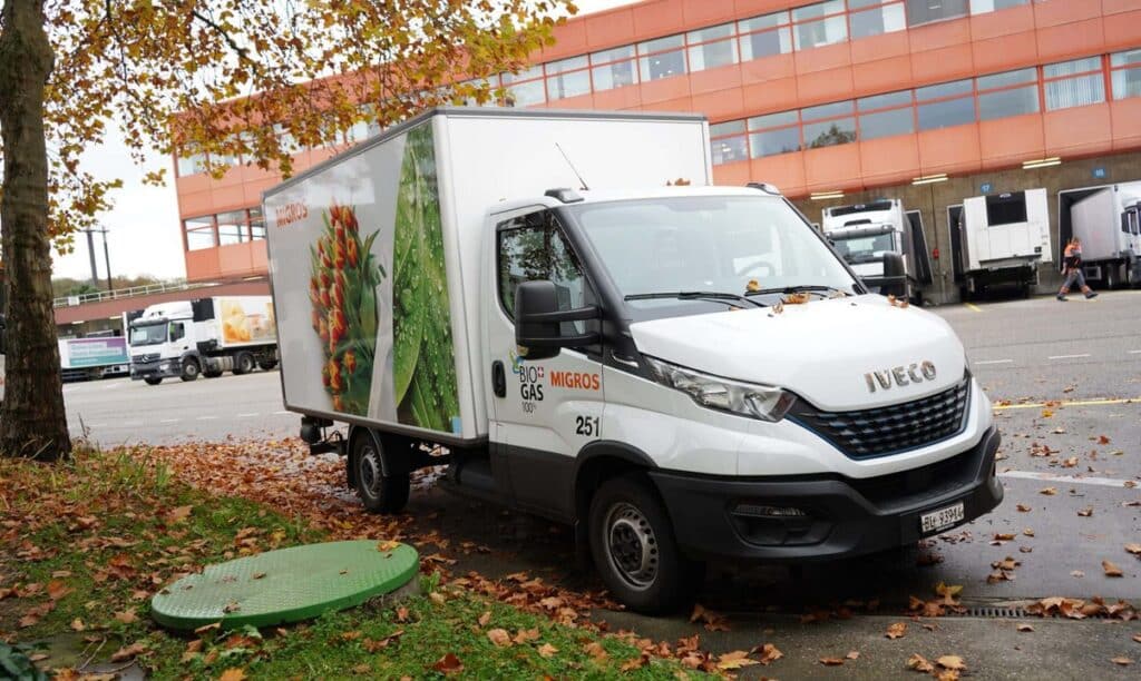 Die Genossenschaft Migros Basel verabschiedete bereits 2017 eine neue Mobilitätsstrategie, um ihre täglichen Transporte klimaschonender gestalten zu können. Ziel: Bis 2030 den CO2-Ausstoss der Migros-LKW um 80 Prozent zu reduzieren. Neben der Optimierung der Transportrouten und Fahrzeugauslastung solle dies auch durch eine Flottenerneuerung der über 30 bis dahin mit Diesel betriebenen Fahrzeuge erfolgen. Neben einem Elektro- und seit kurzem auch einem Wasserstoff-LKW setzt der zweitgrösste Detailhändler der Schweiz dazu aktuell auch auf fünf Biogas-LKW und einen Biogas-Lieferwagen.