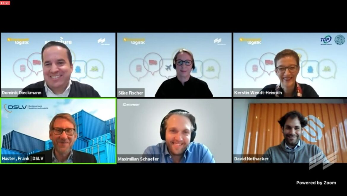 Über die Relevanz von Plattformmodellen für die Speditionswelt der Zukunft im DSLV-Forum diskutierten am 6. Mai 2021 mit Silke Fischer, Head of Global Product Management | Sea Freight bei der Lexzau Scharbau GmbH und Kerstin Wendt-Heinrich, Geschäftsführerin der TOP Mehrwert-Logistik GmbH zwei Führungskräfte etablierter Speditionen. David Nothacker und Maximilian Schaefer sind Co-Founder und Geschäftsführer der Digitalspeditionen Sennder und InstaFreight, Dominik Dieckmann (Senior Manager / Key Account Director Freight & Logistics bei Accenture) fungierte im Panel als neutraler Experte. Moderiert wurde das Forum von DSLV-Hauptgeschäftsführer Frank Huster.