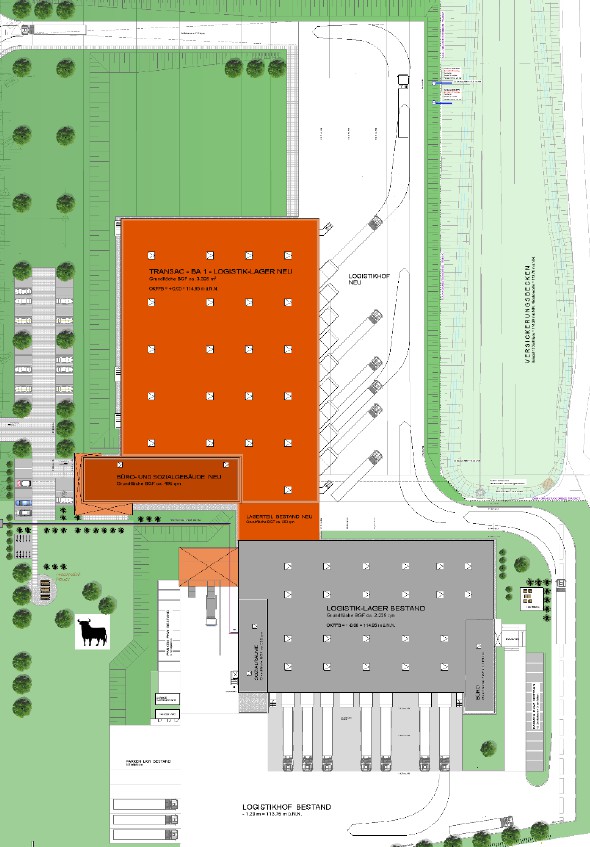 Zunächst ist geplant unsere bestehende Halle 1 mit einem Anbau um ca. 5.- 6.000 m2 zu erweitern. Das bietet uns mehr Umschlags- und auch Lagerfläche, Andocktore und wir können dann endlich den Wareneingang und den Warenausgang voneinander trennen.