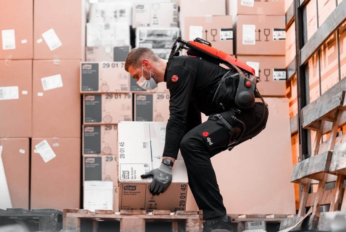 Bei einem Exoskelett handelt es sich um eine Stützvorrichtung, die je nach Bauweise unterschiedliche Bereiche des Körpers entlasten kann. Das Modell Cray X des Herstellers German Bionic schnallt sich der Träger, ähnlich wie einen Wanderrucksack, auf den Rücken und fixiert es anschließend am Körper. Nur kurz muss sich das Gerät mittels verbauter Sensorik kalibrieren und schon ist es einsatzbereit. Dabei wirkt das Cray X auf zweierlei Weise: Zum einen hält es den Rücken des Trägers stets gerade. Zum anderen hilft das Gerät, den Rücken beim Aufheben eines Paketes wieder aufzurichten. Zwei von einer intelligenten Software gesteuerte Motoren ziehen den Träger hierzu an den Schultern nach oben, die Kraft wird unter anderem auf die Oberschenkel umgeleitet. So entsteht eine Rückenentlastung von bis zu 30 Kilogramm bei jeder Hebebewegung.