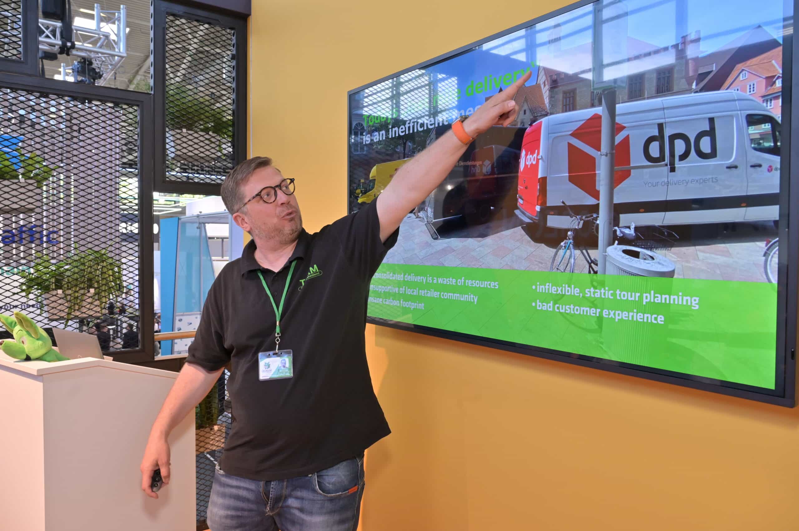 Titelbild: © Seifert Logistics Group / Bildlegende: Felix Dossmann (CEO Grünfuchs) stellt anlässlich der Preisverleiung des Eco Performance Awards sein Konzept vor