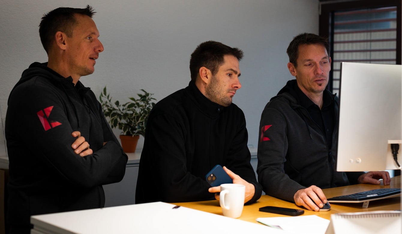 Hans Krummen, Balint Schnell und Peter Krummen bei der Vorbereitung der Route für die Rekordfahrt 16.01.23