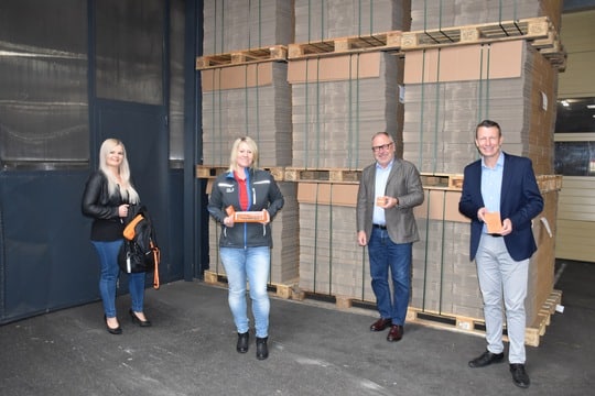 Foto: (v.l.n.r.): Monika Wohlmuther (Gebrüder Weiss), Sonja Maierbrugger (TEWA), Franz Ronge (Geschäftsführer, TEWA), Oliver Wurzer (Gebrüder Weiss) – © Gebrüder Weiss GmbH