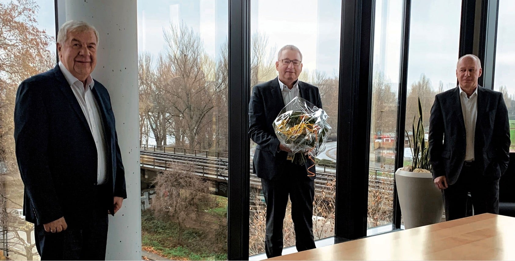 Foto: © Kombiverkehr / Bildlegende: Robert Breuhahn (li) und Armin Riedl (re) begrüßen neuen Geschäftsführerkollegen Alexander Ochs